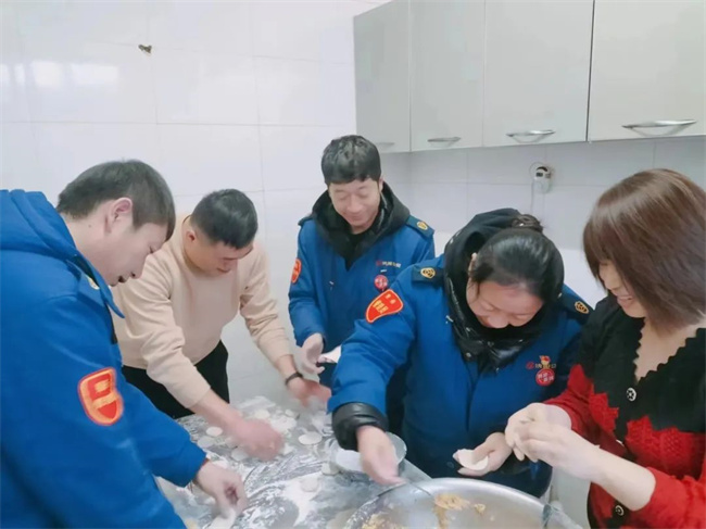 為了讓堅守在一線的職工感受到節(jié)日氛圍,209路車隊食堂工作人員一大早便開始忙碌起來,和面、拌餡、搟皮、包餃子,大家一邊干活一邊聊天,回首過去一年中發(fā)生的有趣事,展望對新的一年美好憧憬,每個人臉上都洋溢著開心的笑容,展現(xiàn)著車隊“一家親”的和諧畫面。