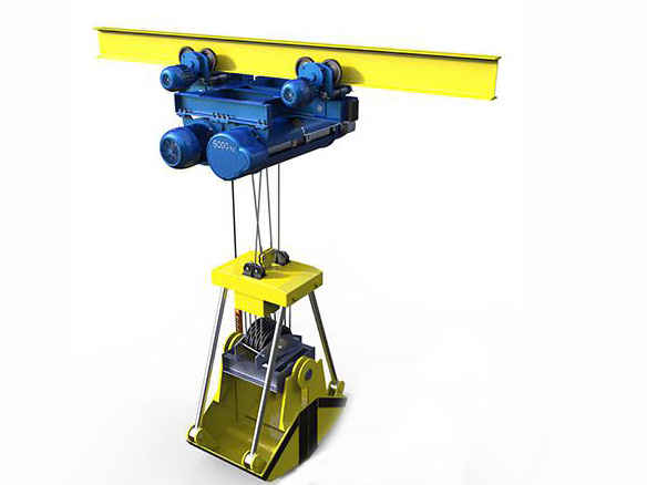 CD/MD型抓斗電動(dòng)葫蘆往往與懸掛小車、承載梁、四繩抓斗等相連接組成一種架空運(yùn)輸裝置(即抓斗起重機(jī)),可以不占場(chǎng)地,僅靠架空軌道運(yùn)行的懸掛式架空小車來(lái)實(shí)現(xiàn)工段與工段之間、車間與車間之間、工廠與工廠之間的大量散粒物品的裝卸和運(yùn)輸。